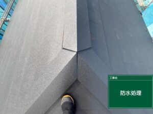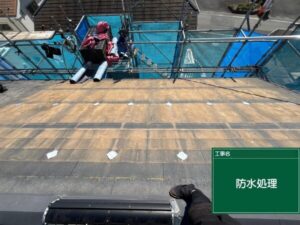 防水テープを貼り付け、念入りに雨水の侵入を防ぎます。