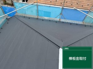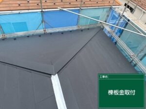 屋根の頂上部分には屋根の面と面の境目を覆い、雨の侵入を防ぐ「棟板金」が設置されています。