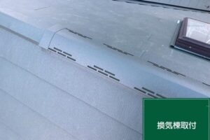 屋根の面と面の境目の高い部分には、こちらも雨水が入り込まないように、専用の板金「棟板金」が設置されます。