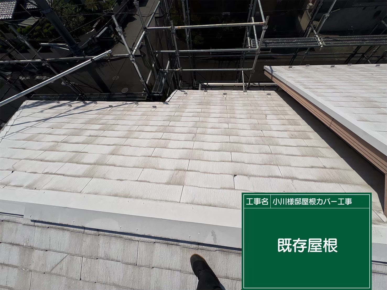 スレート屋根を使用されていましたが、全体的に色が抜け、白くなっています。