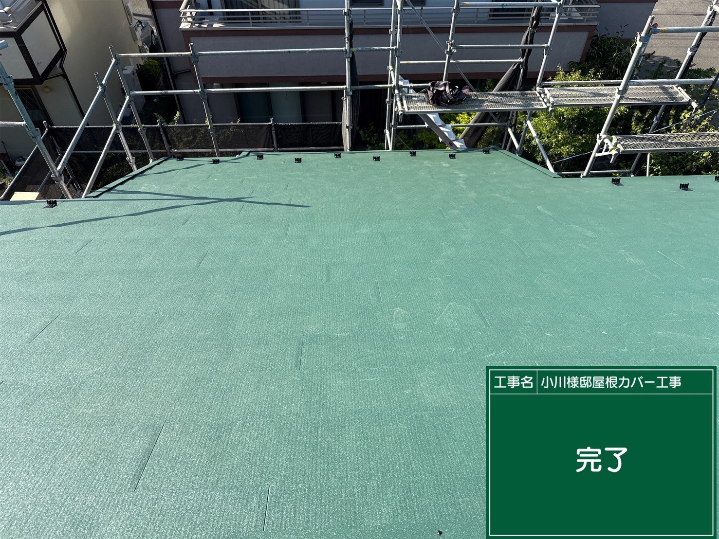 既存屋根を残したまま、新しい屋根材で覆うカバー工法で屋根修理させていただきました。