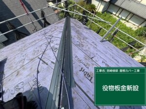 新しい屋根材「スーパーガルテクト」を設置していきます。