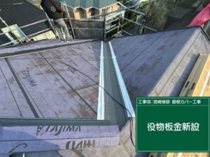 屋根と屋根が交差してくぼんでいる部分に谷板金を設置します。