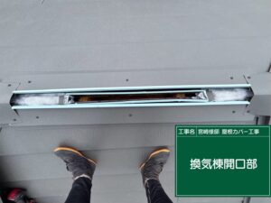 棟部分に屋根の内部に湿気や熱気を逃すための換気口を設置していきます。