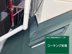 最後の仕上げ、屋根材と板金の隙間にコーキング材を充填します。
