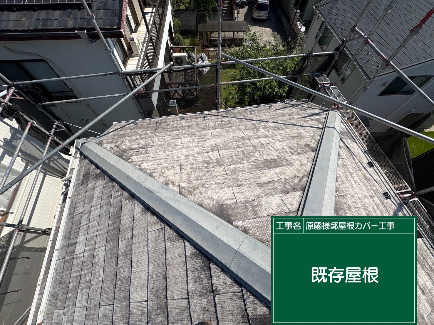 屋根材を残し、上から新しく屋根材を設置する「カバー工法」でスーパーガルテクトを設置いたしまいた。